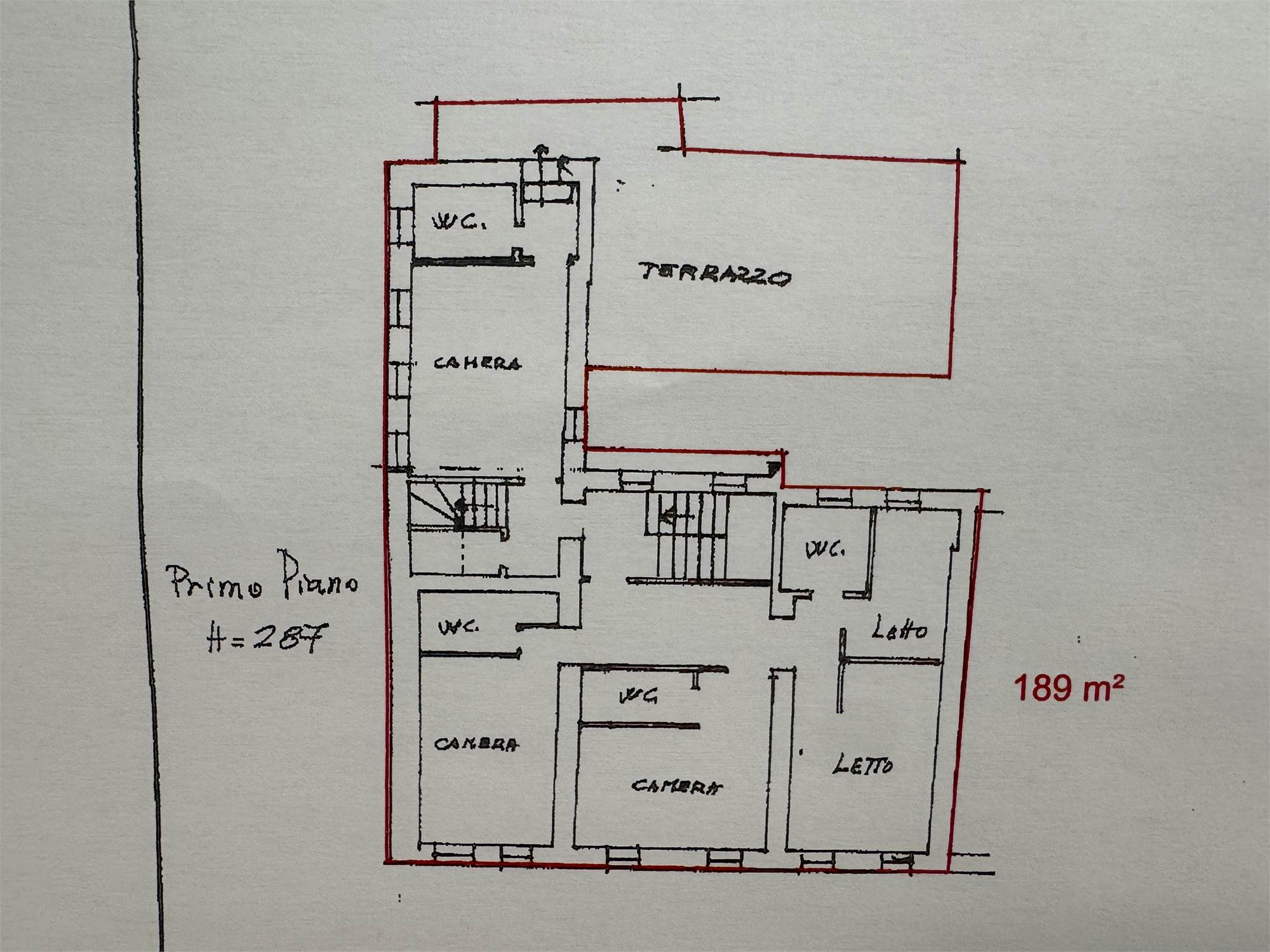 Piano Primo (circa 146 mq): zona ricettiva con 5 camere da letto e 4 bagni, attualmente non utilizzata ma con ottimo potenziale per attività di affittacamere o B&B;