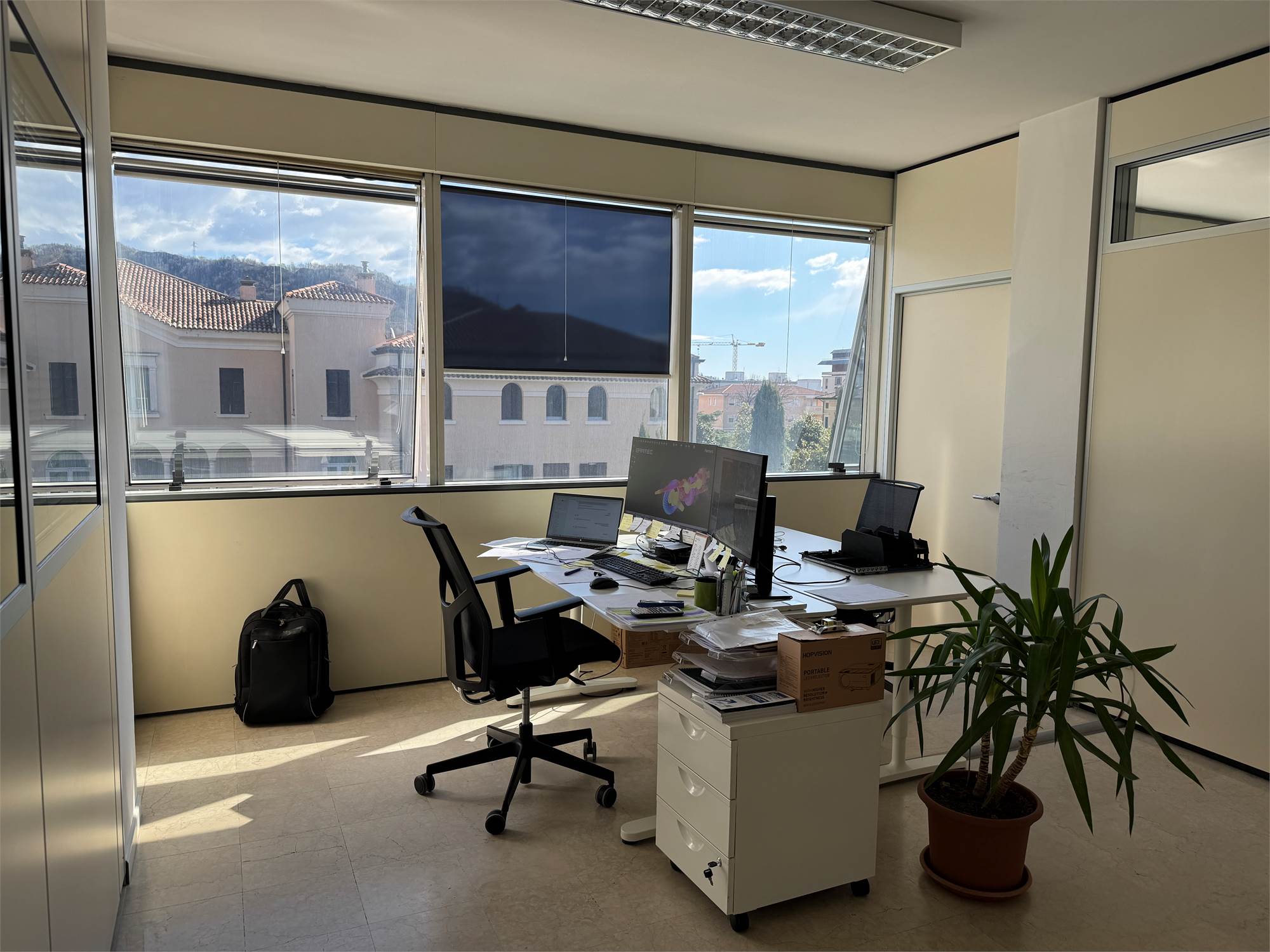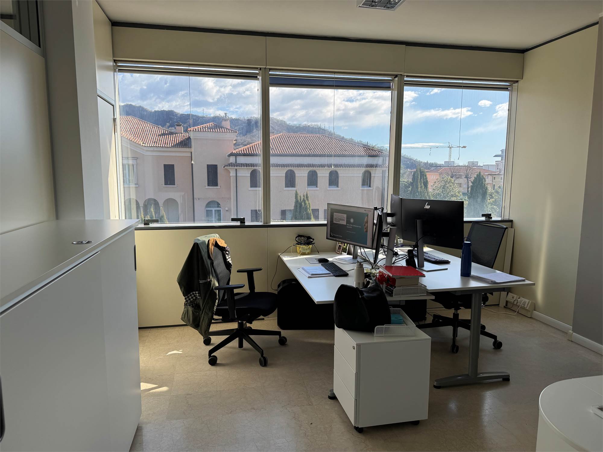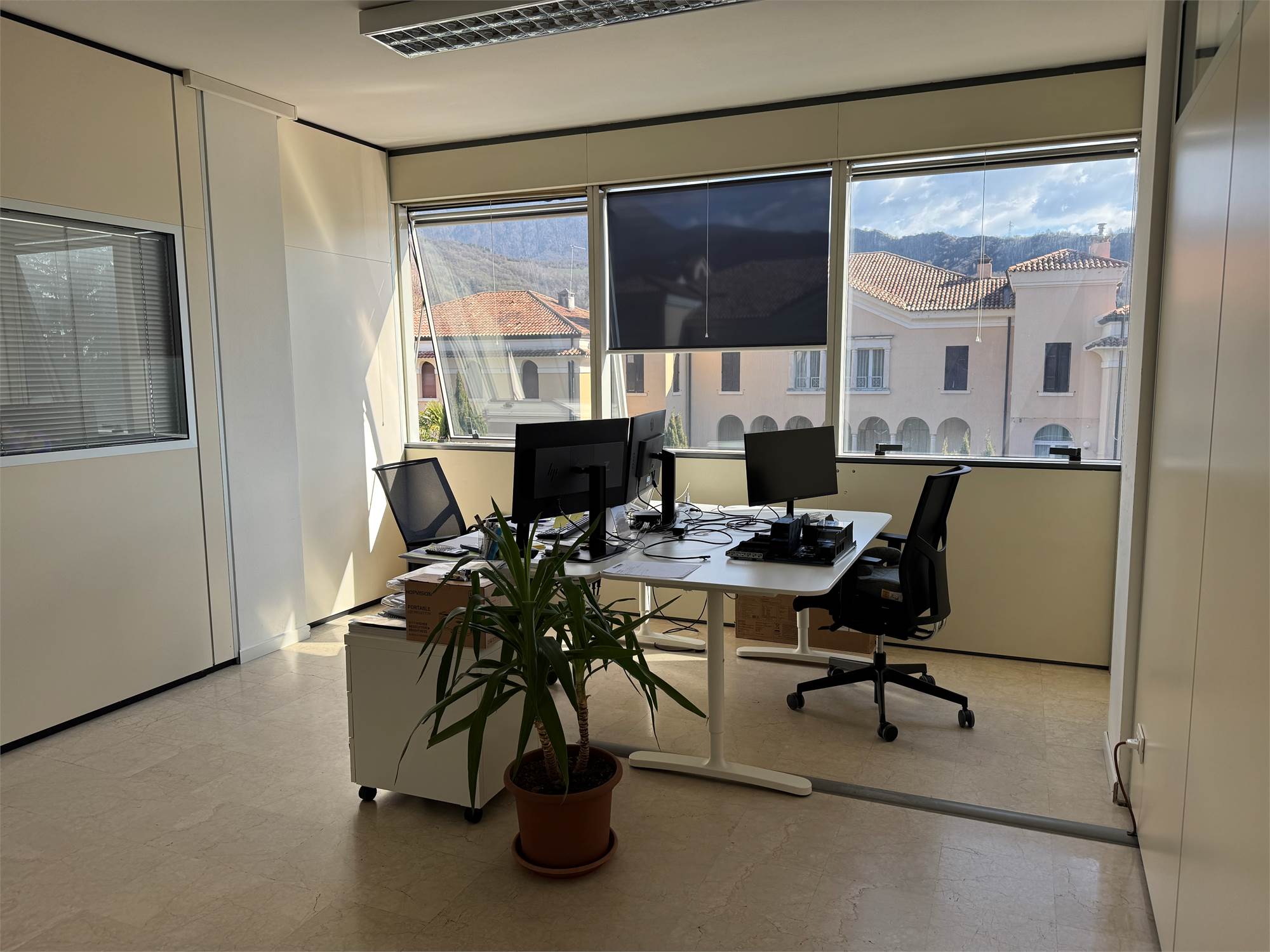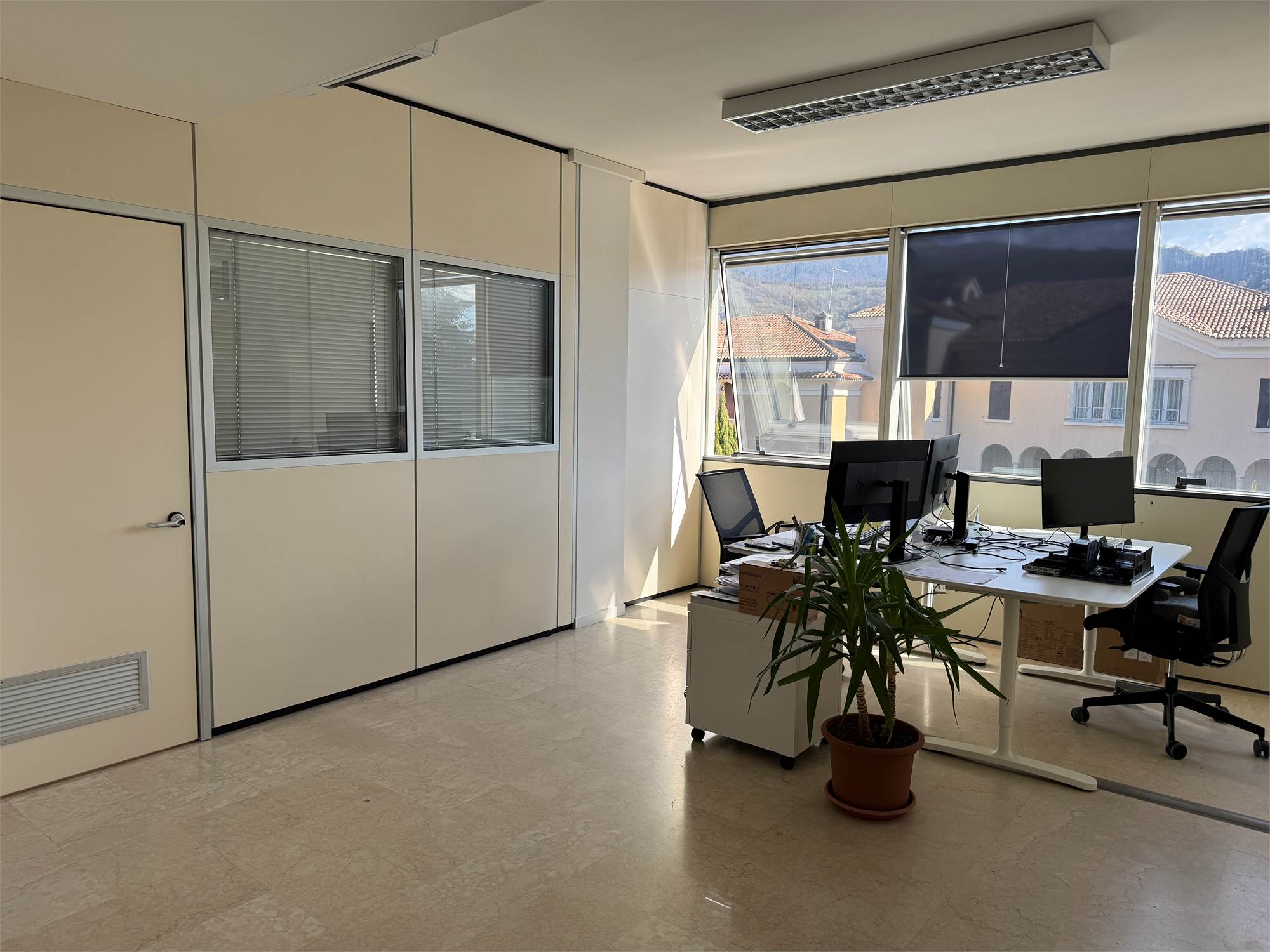L’ufficio si distingue per le ampie vetrate che garantiscono un’eccellente luminosità naturale e offrono una gradevole vista panoramica, rendendo gli ambienti di lavoro confortevoli e rappresentativi.