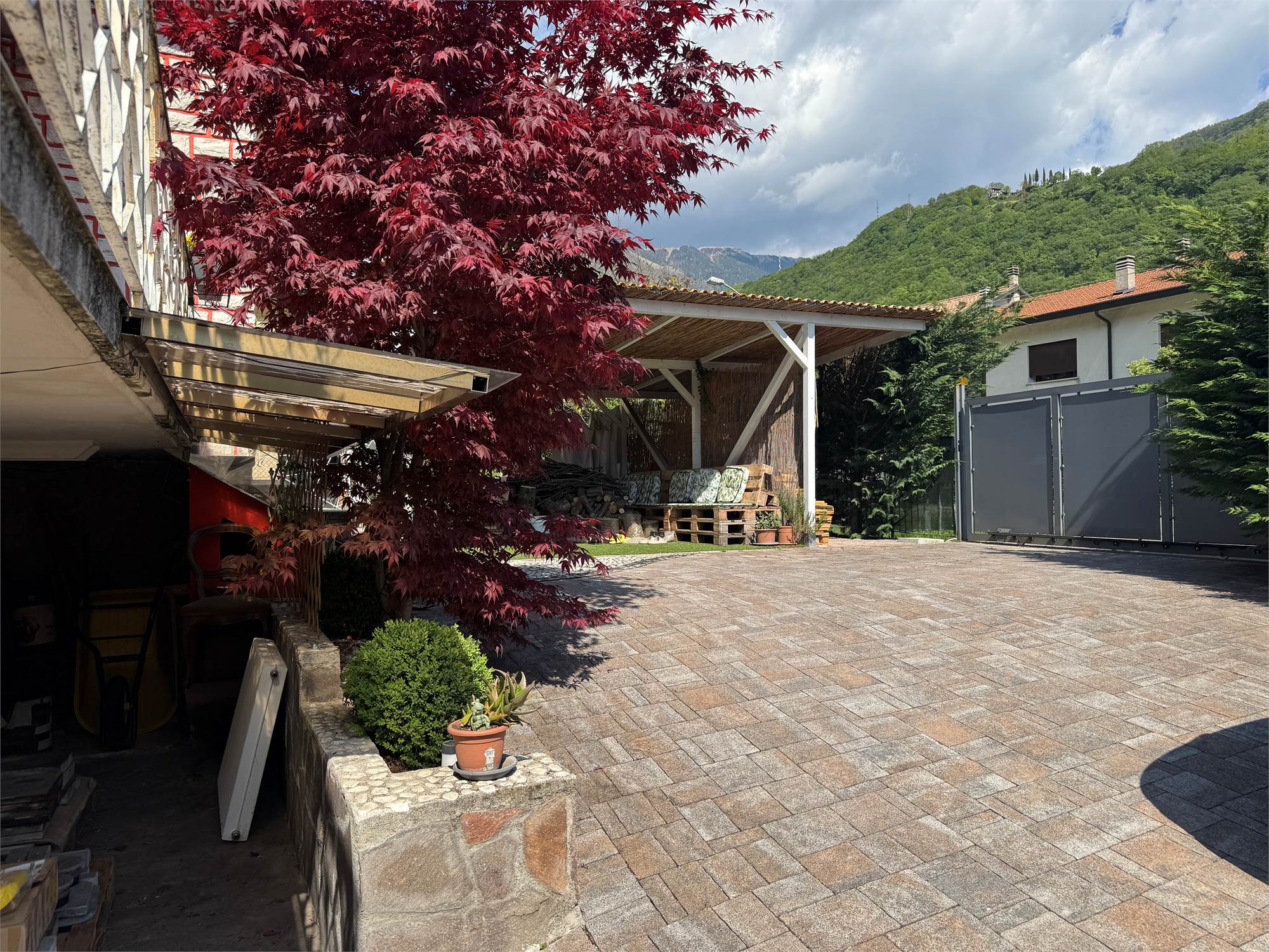 Esterno: Completa la proprietà uno scoperto privato di circa 280 mq, perfetto per il relax all'aperto o per chi ha animali domestici.